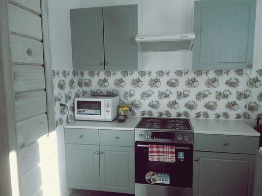 Кухня укомплектована всіма необхідними меблями і побутовою технікою для самостійного приготування їжі. Поруч знаходяться ресторани і кафе, де подають страви української традиційної кухні.