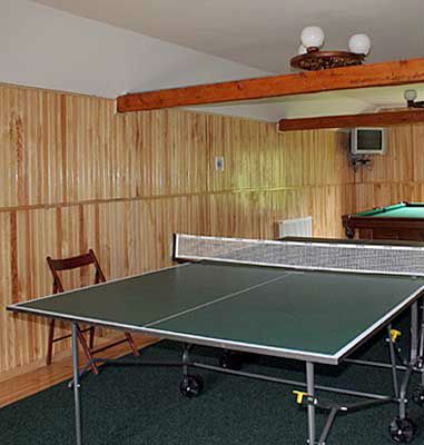 - На четвертому поверсі, спільному для обох половин, знаходиться кімната відпочинку з телевізором, більярдом, настільним тенісом.