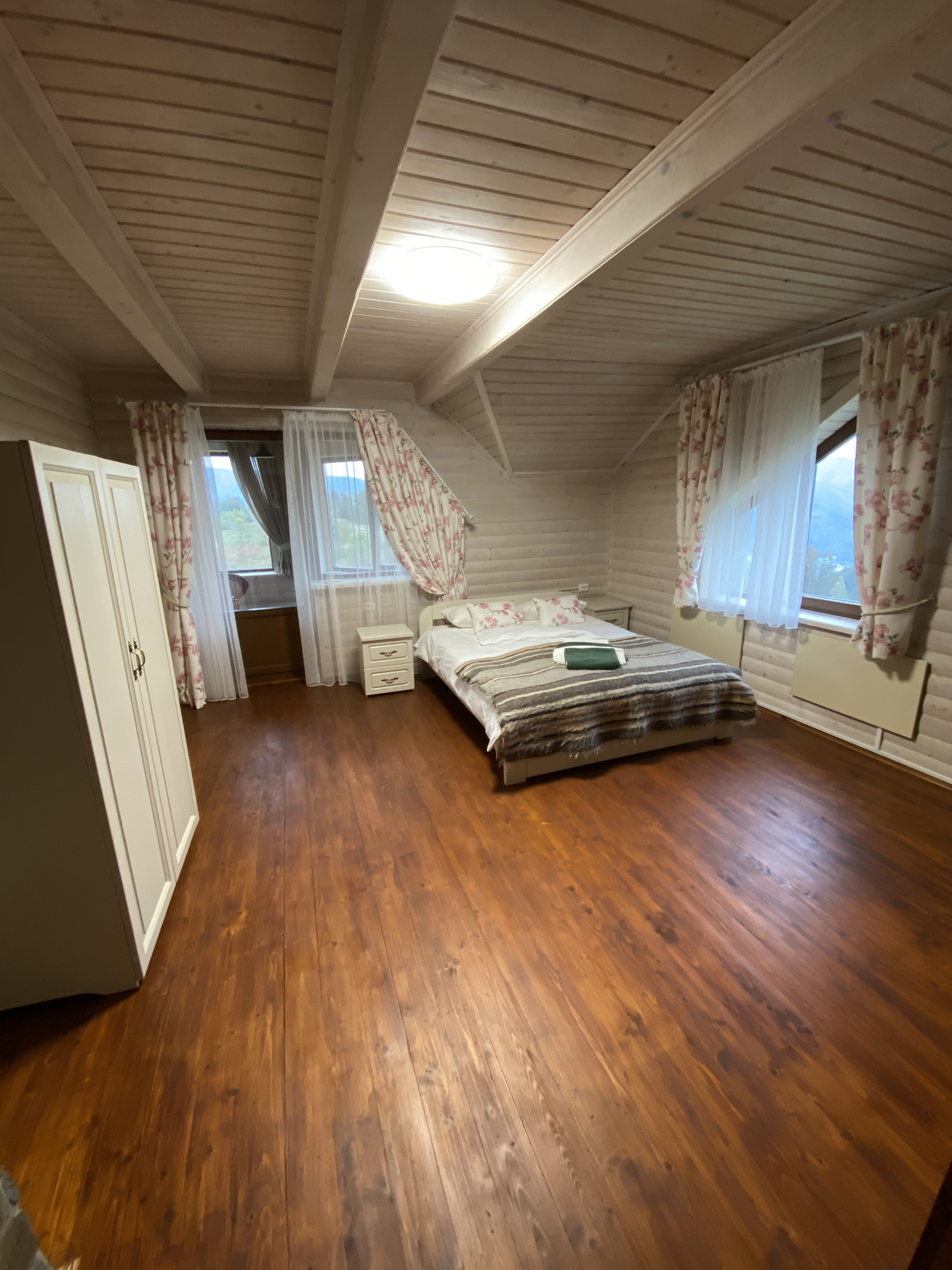 Котедж знаходиться в одній з найвищих точок міста Яремче, звідки відкриваються неймовірні краєвиди на гори. На першому поверсі знаходиться кухня з усім необхідним для приготування їжі, велика зала для відпочинку та санвузол. На другому поверсі три спальні кімнати з 2-спальними ліжками, в кожній кімнаті окремий санвузол.