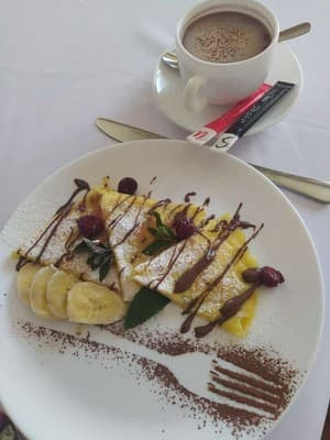На території міні-готелю є ресторан, де гості можуть харчуватись по меню.