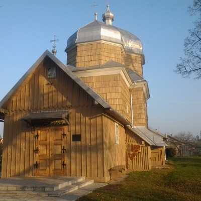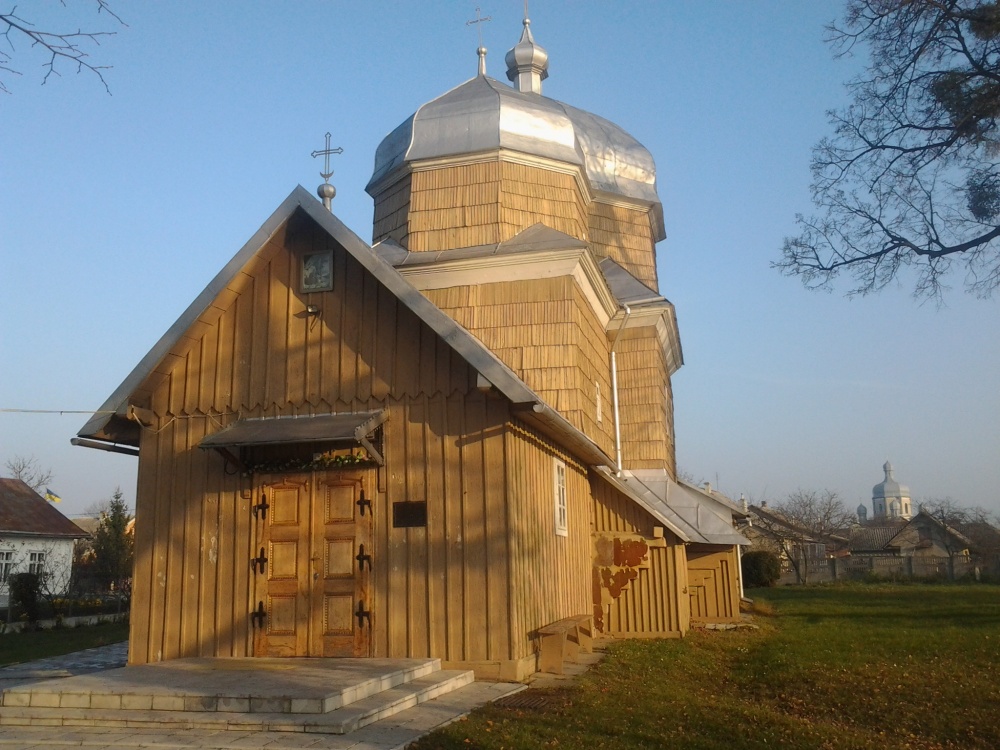 Дерев’яна, тризрубна, триверха. Складається з прямокутного центрального зрубу (5.77 на 6.60 м.), квадратного бабинця (3.78 на 4.45 м.), до якого прилягає присінок, рівної ширини і вдвічі довший від бабинця, та гранчастого пятистінного вівтаря (3.73 на 4.65 м.). соснові зруби поставлені на дубові підвалини. Зруби, значної висоти, завершуються високими восьмериками, які увінчані куполами з витонченими маківками. Споруда оточена піддашшям, яке опирається на випусти вінців і приставні кронштейни. Компактно згруповані об’єми створюють виразну, динамічну композицію, в якій домінує центральний верх у всіх розмірах (висота – 18.25 м.). всі об’єми перекриті зімкнутими зрубними склепіннями, відкритими до зеніту. Бабинець, з вузькими хорами вздовж західної стіни, з’єднаний з центральним зрубом невисокою лучковою аркою.