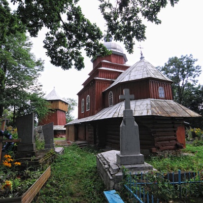 Щоб розширити площу храму, до бабинця і нави прибудували великі додаткові приміщення(які спотворили оригінальний вигляд святині). На південний захід від неї розташована оборонного виду дзвіниця.