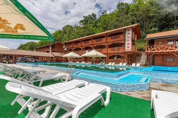 Вілла "Dallas" розташована в місті Солотвино, за 2,3 км від залізничної станції. У відпочинковому комплексі вілли «Даллас» розміщено три двоповерхових дерев`яних будинки. До послуг гостей двомісні номери класу делюкс та стандарт. В номерах є все необхідне для проживання: ліжка, телевізор, власна ванна кімната, рушники, туалетно-косметичні засоби, безкоштовний Wi-Fi, балкон з терасою. До уваги гостей пропонується безкоштовно сезонний відкритий басейн та приватна автостоянка, яка розміщена на території готелю. На території розташовані розважальні дитячі майданчики, літня кухня, затишні альтанки з мангалами. Відстань від вілли "Dallas" до центру міста 2, 7 км, до автостанції 2,5 км.