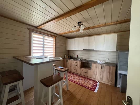 В котеджі є власна кухня для приготування з плитою, мікрохвильовою піччю, холодильником, чайником, кавовим апаратом, посудом.