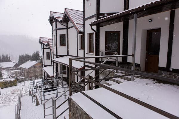 Котеджі "Друзі" розташовані в 3,5 км від центру селища Поляниця і в 5,4 км від підйомника "Буковель". Вони являють собою двоповерхові будівлі. У котеджах є робочий стіл, шафа, вішалки для одягу, прасувальні приналежності. Для комфортного проживання ванна кімната укомплектована рушниками, халатами, тапочками, туалетно-косметичними приладдям, умивальником, душем. Подача холодної та гарячої води цілодобова. До послуг проживаючих безкоштовна парковка для автомобілів, Wi-Fi, мангал. Кухня обладнана всіма необхідними меблями і побутовою технікою для самостійного приготування їжі. Особливістю даних котеджів є прекрасний вид на гори, який відкривається з тераси. Відстань до котеджів "Друзі" від автовокзалу в Поляниці - 800 м; від залізничного вокзалу У Татарові - 14,3 км; від аеропорту в Івано-Франківську - 61,5 км