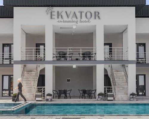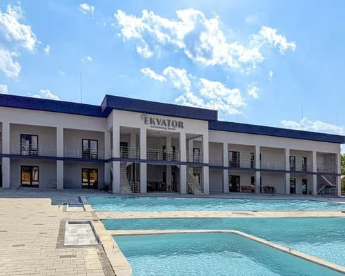 Готель "Ekvator" розташований у селищі Солотвино, за 850 м від солоного озера. До послуг гостей комфортні номери, обладнані усім необхідним для комфортного відпочинку: зручними ліжками з постільною білизною, телевізором, холодильником, шафою, робочим столом, доступом до мережі Wi-Fi та балконом. Санвузол оснащений душовою кабіною, умивальником, туалетом, косметичними засобами, рушниками та феном. На території готелю є автостоянка, ресторан, басейни з прісною та соленою водою, дитячий басейн, зона відпочинку із шезлонгами та парасолями від сонця, альтанки, зона барбекю. Відстань від готелю "Ekvator" до центру селища складає 4,4 км, до автостанції - 4,2 км, до залізничної станції "Солотвино-1" - 3,1 км.