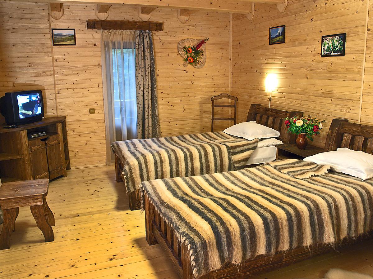 - Кожний номер забезпечений супутниковим телебаченням, капцями і туалетно-косметичними засобами. Стіни номерів оздоблені дерев'яними панелями у стилі шале. Номери обставлені масивними дерев'яними меблями.
