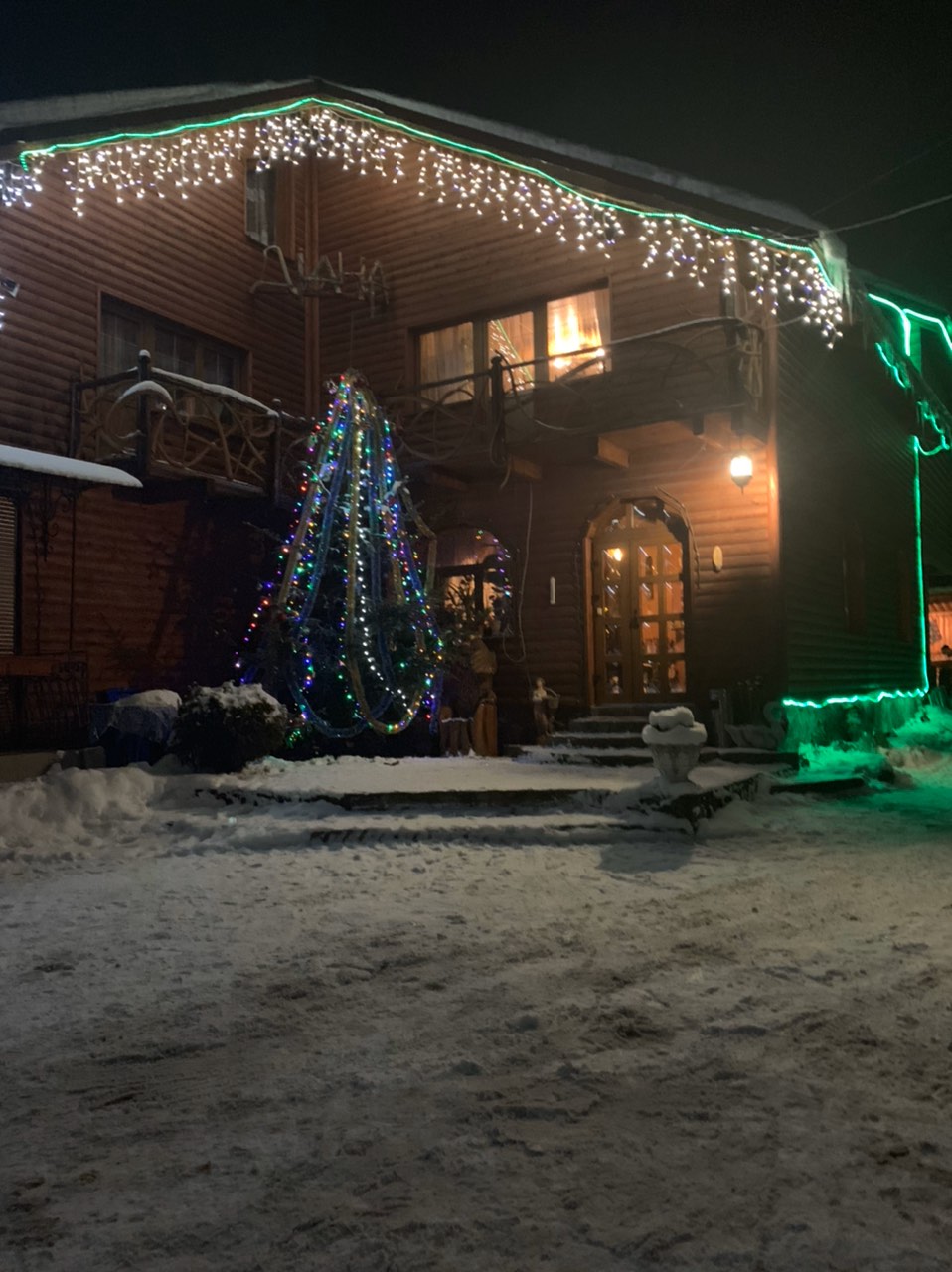 - На першому поверсі - простора вітальня з каміном та столами за якими можна як відпочивати, так і харчуватися; повністю облаштована кухня, де можна самостійно готувати їжу (газова плита, мікрохвильова піч, холодильник, необхідний набір посуду); два двомісних сімейних номери (двоспальне ліжко, розкладне крісло, телевізор з супутниковим телебаченням, санвузол - душова кабіна, туалет, умивальник).