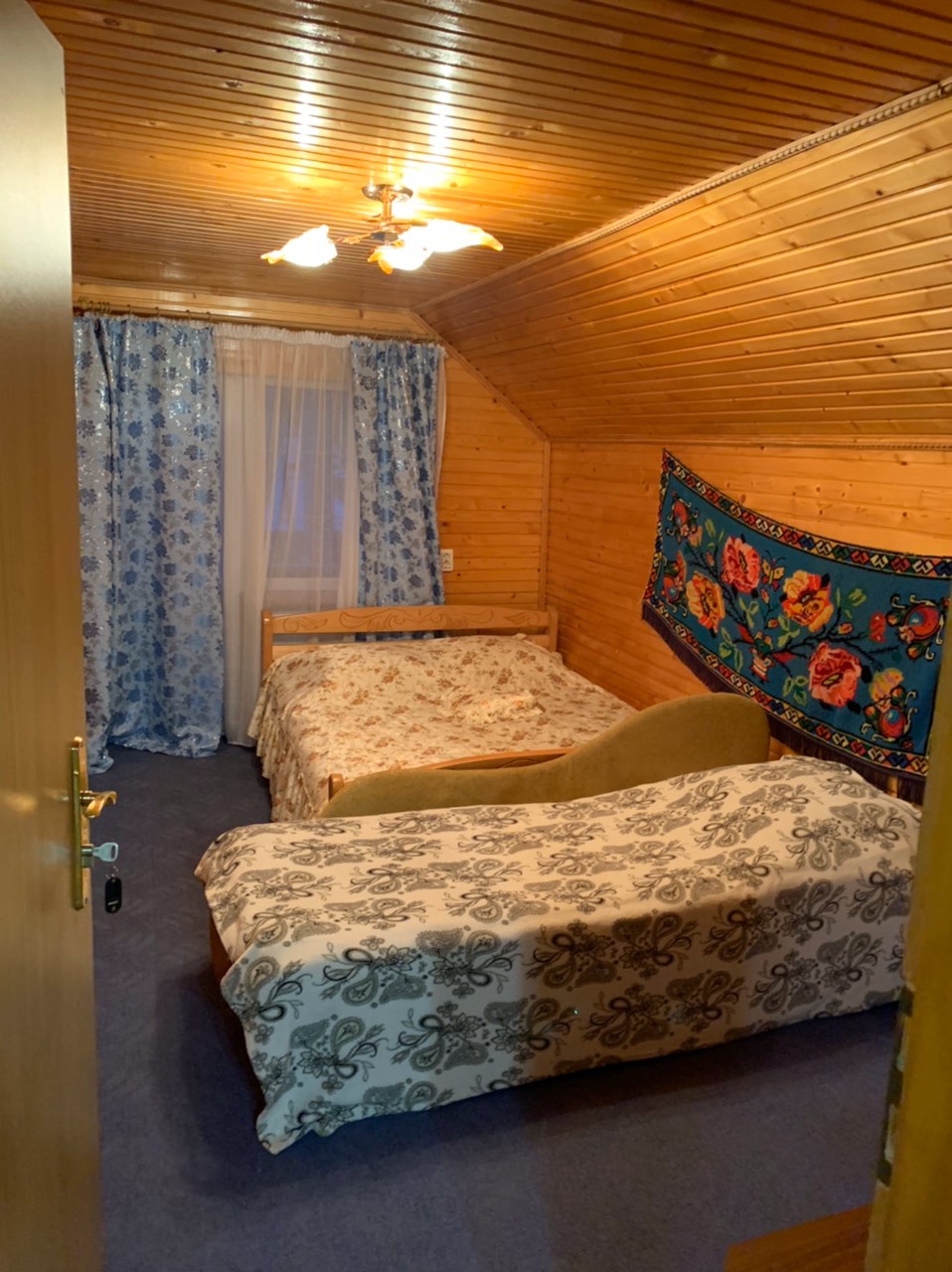 - На третьому поверсі - 2 чотиримісні номери (у кожному - 2 двоспальні або двоспальне та 2 односпальні ліжка, вішалка для одягу, телевізор, стіл зі стільцями; санвузол - душ, туалет, умивальник).
