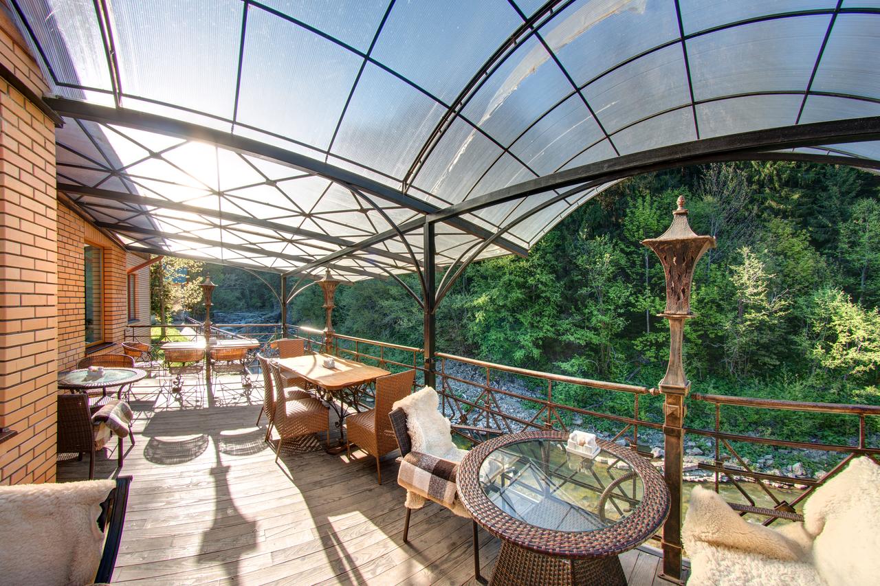 Страви української та грузинської кухонь подають у традиційно оформленому ресторані з каміном і терасою. До послуг гостей також кіно-бар, де можна замовити різноманітні напої та подивитись улюблені фільми.