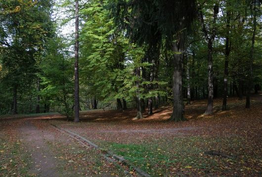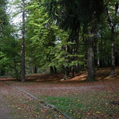 Beech, pine, oak, cedar, poplar, ash, maple, walnut, acacia, ornamental trees and shrubs. An old apple orchard still grows here.