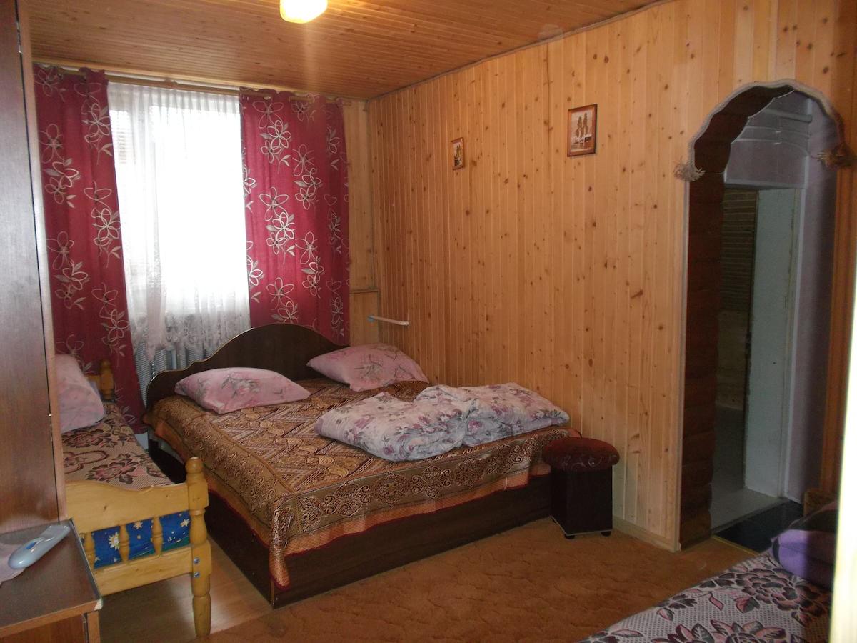 У будинку є все необхідне для комфортного проживання: на 1-му поверсі - кухня (електрична плита, холодильник, електричний чайник, мікрохвильова піч, посуд, обідній стіл), спальня (двоспальне ліжко, вішалка для одягу, телевізор), санвузол (душ, туалет , умивальник, пральна машина), на 2-му поверсі - хол з диваном, номер на 4х (двоспальне ліжко, 2 односпальні ліжка, вішалка для одягу, телевізор). На 3му поверсі - 7 кімнат: 2 - двомісні, 3 - трьохмісні і 3 - чотирьох місні (з них двомісні і 1шт чотирьох місний зі зручностями на поверсі). На 4му поверсі - 3 номери трьохмісні мансардні зі зручностями на поверсі.