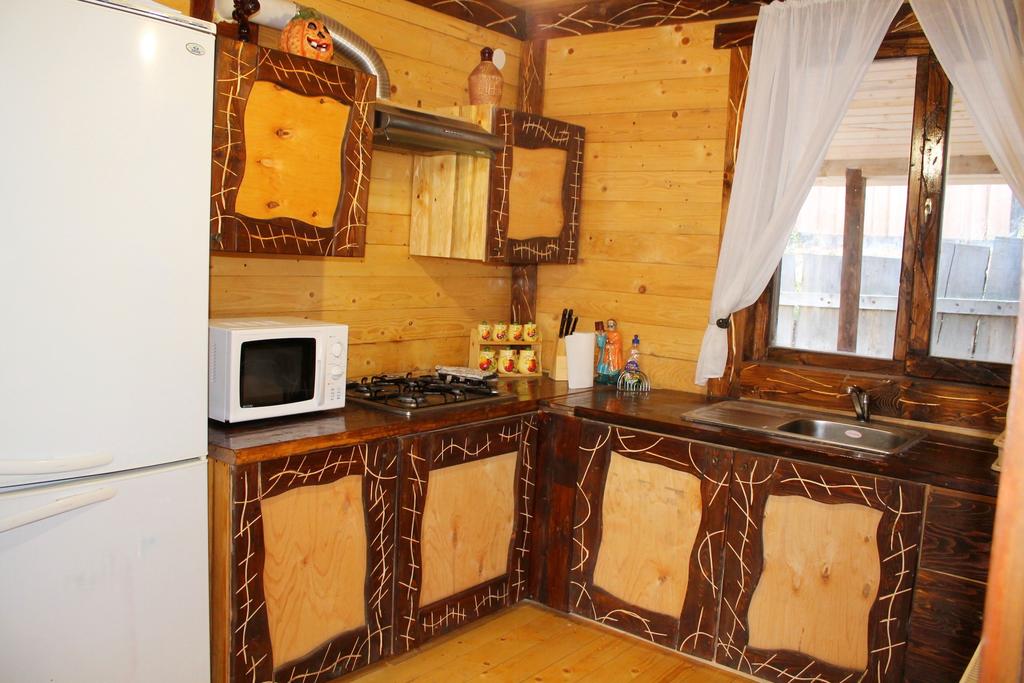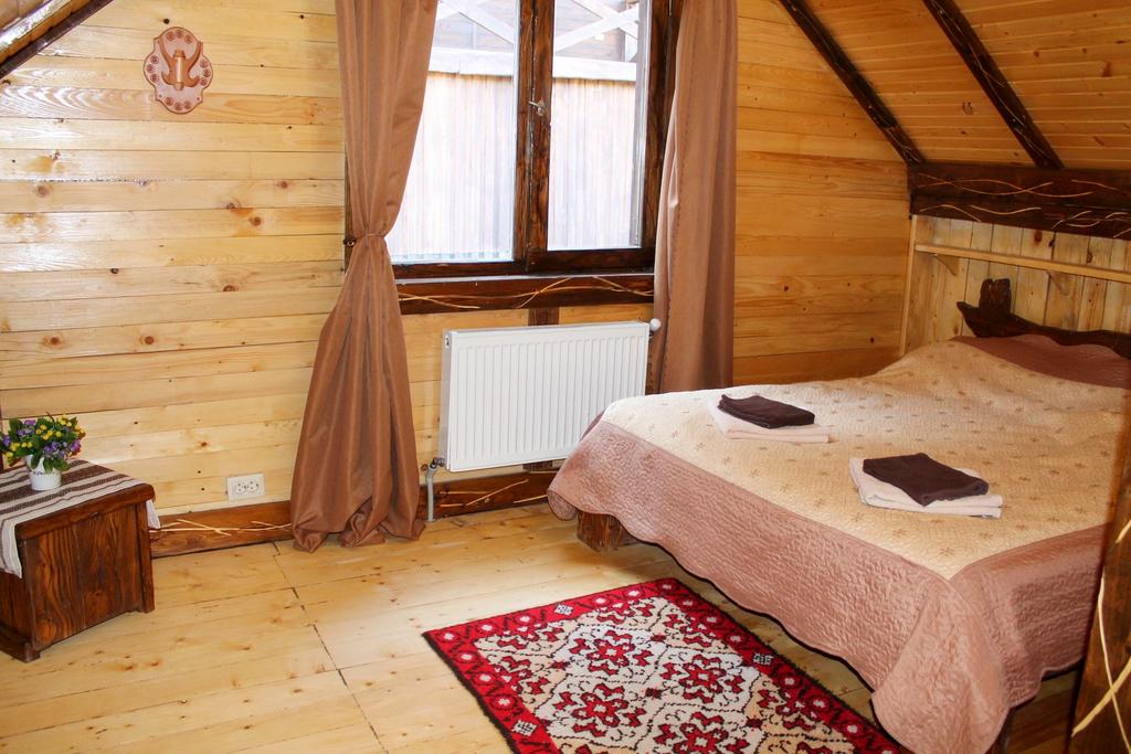 На першому поверсі - 2 двомісні кімнати (у кожній - двоспальне ліжко або розкладний диван, балкон, в одній кімнаті є телевізор, комод), санвузол (душова кабіна, туалет, умивальник). На другому поверсі - обладнана кухня, вітальня з каміном (розкладний диван, обідній стіл, телевізор, шафа для одягу, вихід на терасу), санвузол (душова кабіна, туалет, умивальник). На третьому поверсі (в мансарді) - 2 двомісні кімнати (в кожній - двоспальне ліжко). Опалення: електричні конвектори, камін.