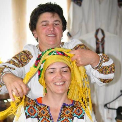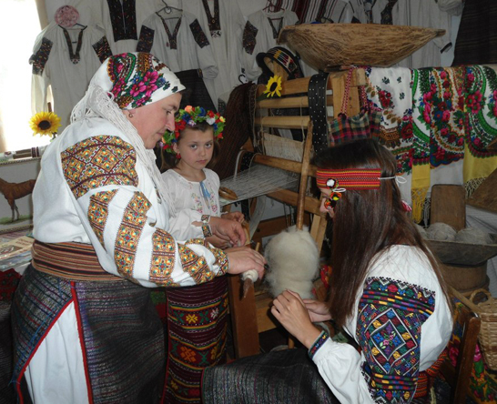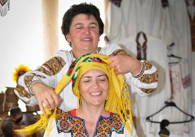 Галина Яцентюк навчає гостей зав’язувати перемітку – головний убір, який носили гуцулки після одруження. Довжина перемітки може сягати від 2,5 до 6 метрів. Насправді, це досить нелегка справа і в Україні зовсім небагато людей вміють зав’язувати цей головний убір. Пані Галина чотири роки шукала людину, яка б могла навчити її зав’язувати перемітку.