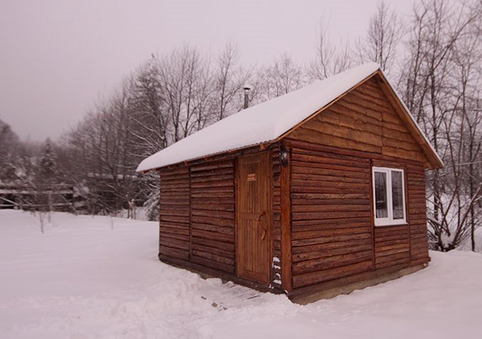 - На першому поверсі - кухня-вітальна з каміном (газова плита, холодильник, чайник, мийка, необхідний посуд, розкладний диван, телевізор, обідній стіл), санвузол (душ, туалет, умивальник).