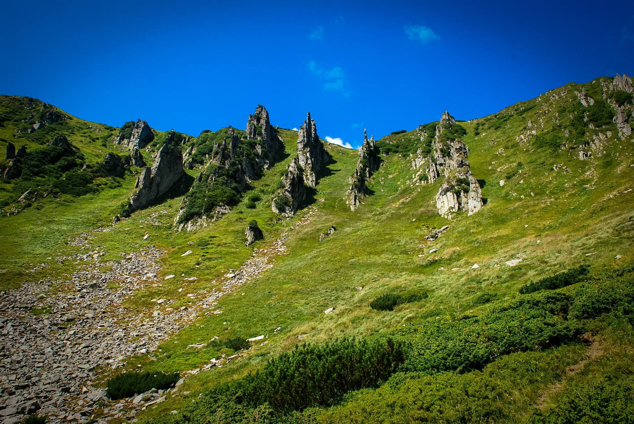 The route passes along the peaks of the highest in Ukraine Chornohora ridge. The trail in the highlands passes through the Transcarpathian slopes, sometimes passing along the peaks. If you wish, you can climb all the Chornohora towers without exception.