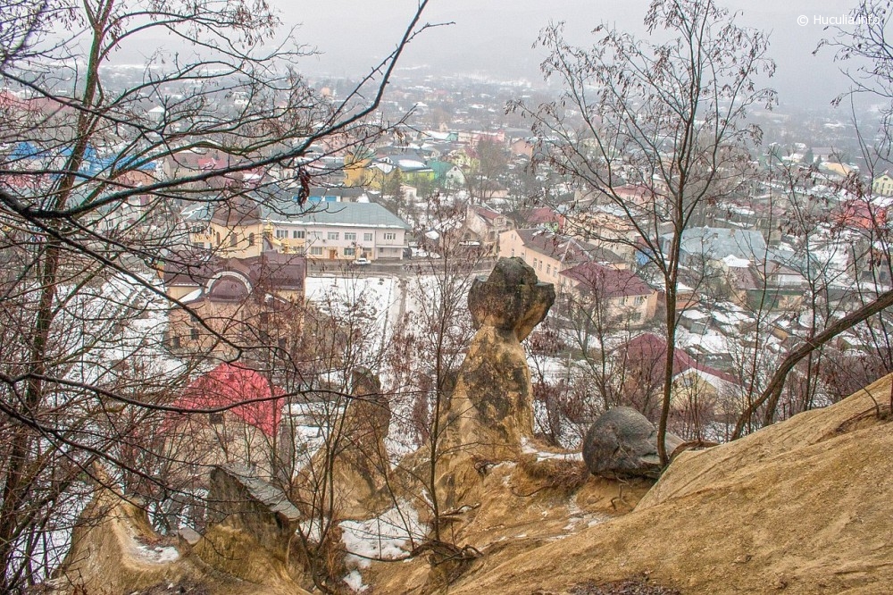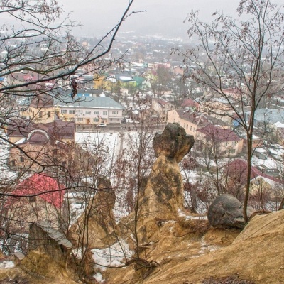 The mountain is home to unique black alpine pines, as well as deciduous and coniferous plantations, and white acacia thickets. The peculiarity of this mountain is the Neogene sandstones. It is probably the lowest mountain in the Carpathians, so everyone can conquer it. The best time to visit is on a winter night. The Carpathians are covered with snow, and the settlements are illuminated with lights. The first thing tourists notice is the monument to the patriot of Ukraine Mykhailo Horbovyi, who lived under the mountain. The monument itself was unveiled in 2013. Then we walk along a dirt road, if you are lucky when it is dry, and if it rained, you can drown in the mud.