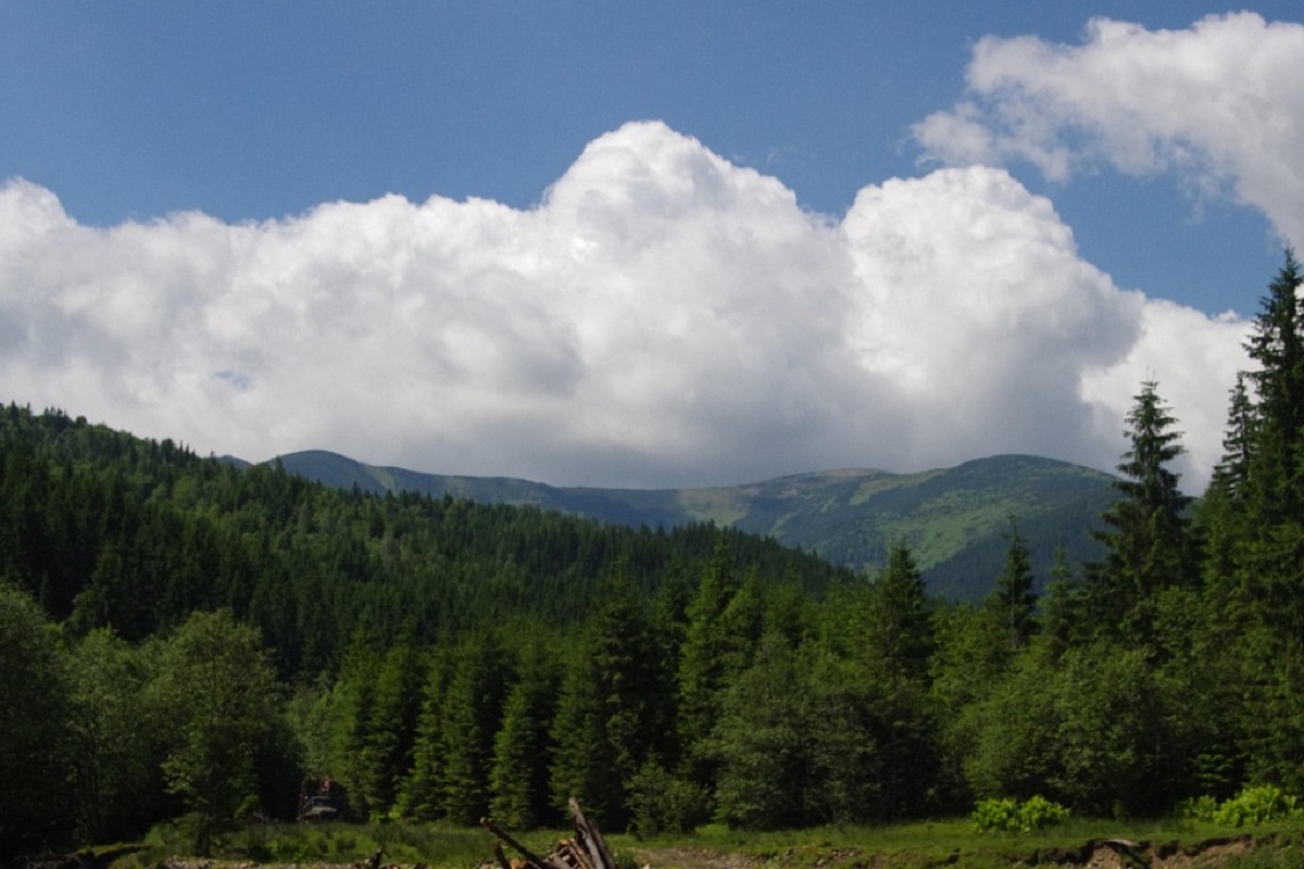 To the north-west of Bratkivska Mountain is Mount Gropa and, further behind it, Mount Durnia, to the east - Mount Ruska and Mount Chorna Kleva, to the south-south-west - the Okole Pass, through which you can actually climb to the main ridge of the Svydovets mountain range.