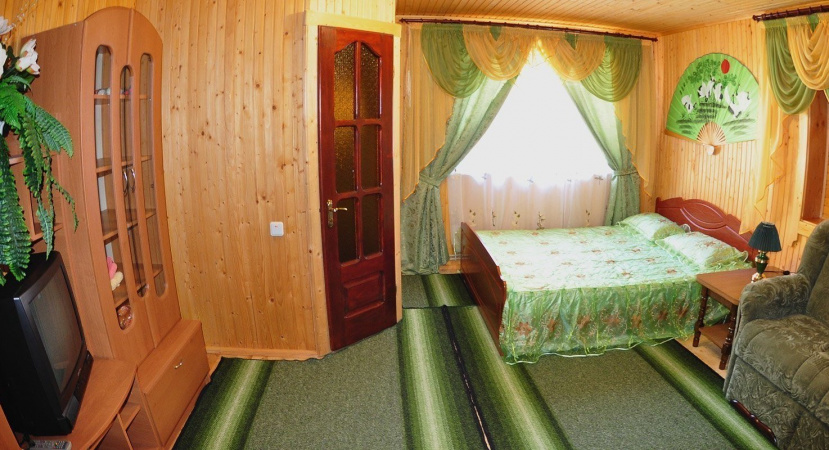 - Кімната №1 — двоспальне ліжко, розкладний диван, столик, телевізор з супутниковим ТБ, санвузол (душова кабіна, умивальник, туалет).