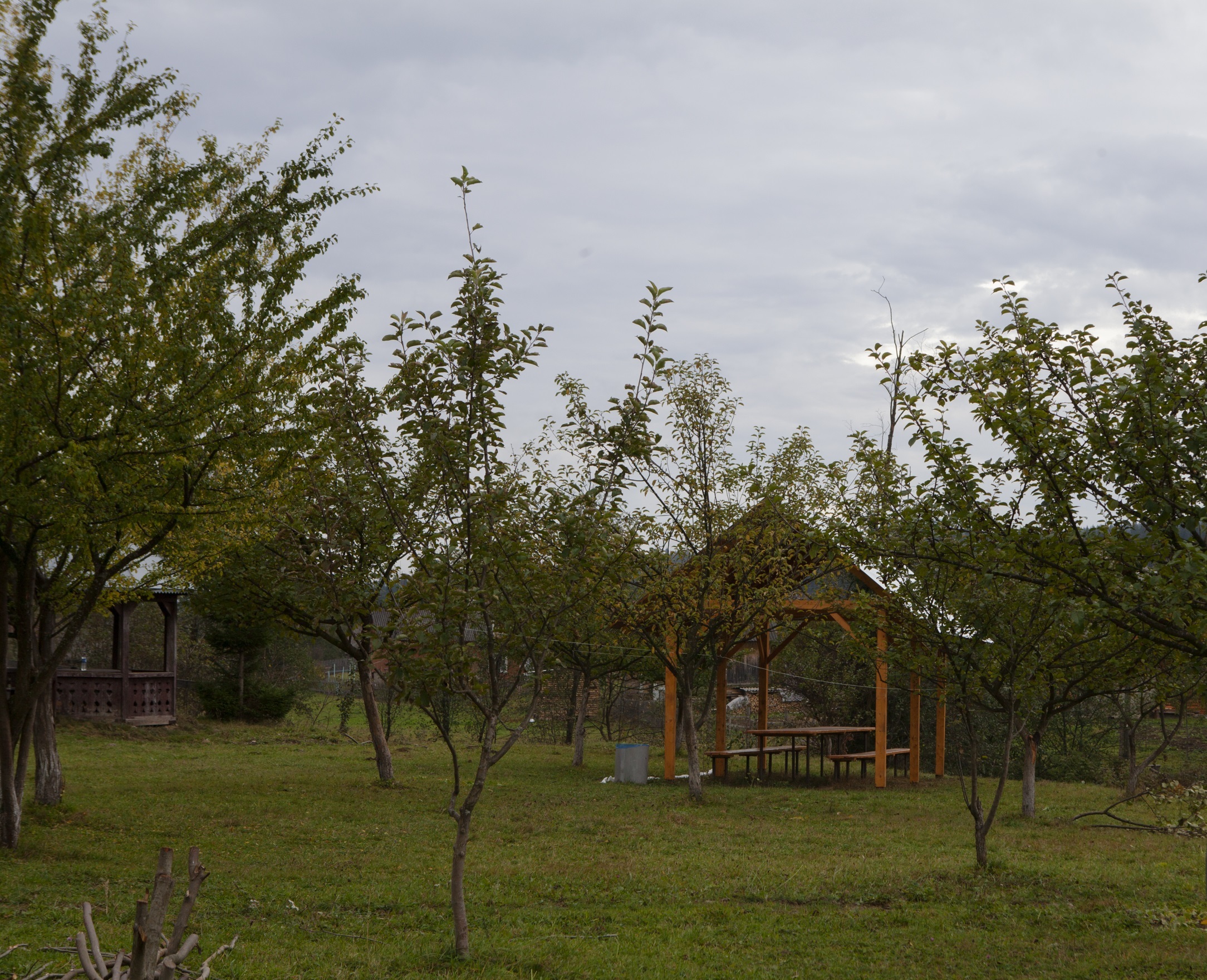 Можна самостійно готувати їжу на кухні (газова плита, мікрохвильова піч, холодильник, електрочайник, посуд, мийка). Для груп від 10 осіб можливе дворазове харчування. До найближчого кафе - 600 м, магазину - 400 м. На великій території є місце для наметового містечка. Поряд є річка.