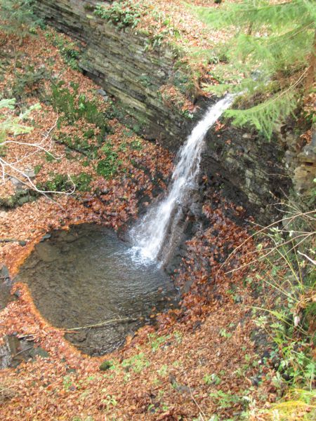 Pidhurkalo is a waterfall in the Ukrainian Carpathians, in the northwestern part of the Gorgany mountain range. It is located southwest of the village of Ripne.