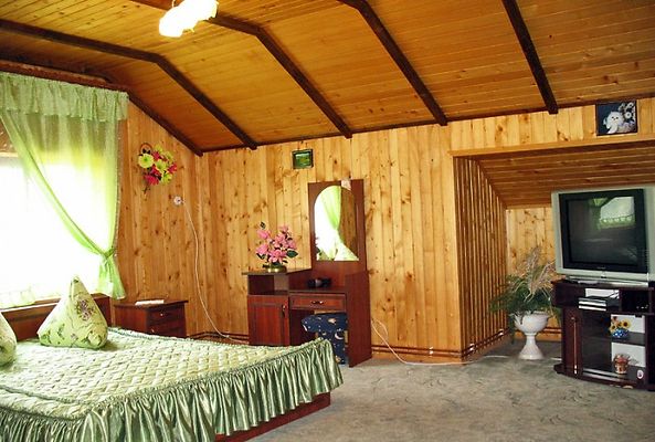- На першому поверсі — прихожа з вішаками для верхнього одягу; двокімнатний "Люкс" (вітальня — м'який розкладний куток, вішаки, столик з табуретками, телевізор, холодильник, електрочайник, набір посуду; санвузол (душ, умивальник, туалет, фен); спальня — 2 односпальних ліжка, розкладний диван, шафа для одягу, трюмо, телевізор, балкон), однокімнатний "Напівлюкс" (двоспальне ліжко, тумбочки, розкладний диванчик, шафа для одягу, столик з табуретками, телевізор, холодильник, електрочайник, набір посуду).