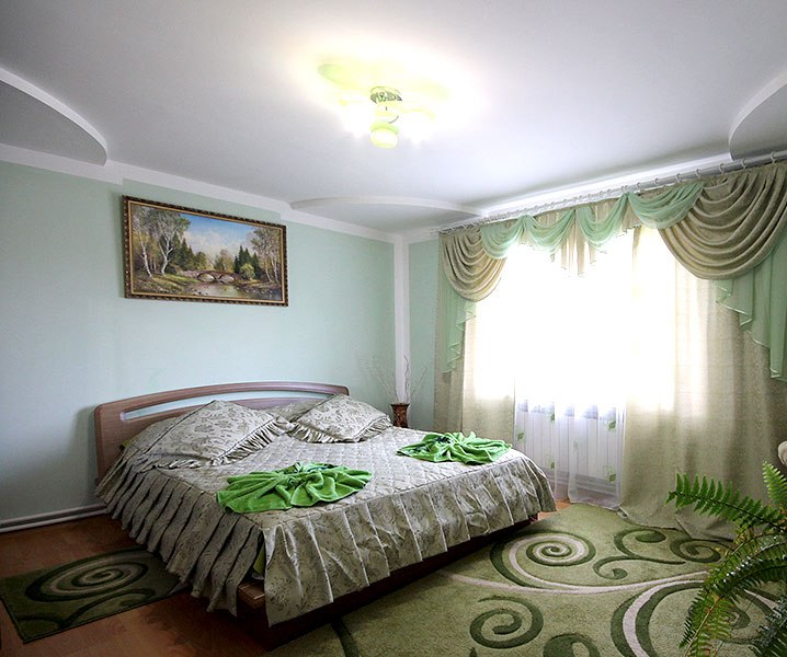 Кухня-їдальня - газова плита, холодильник, чайник, стіл з кріслами, телевізор. Загальний санвузол - гідробокс, туалет, умивальник. 1 кімната - двоспальне ліжко, розкладний диван, тумба, комод, шафа, телевізор. 2 кімната - двоспальне ліжко, тумби, телевізор, вішаки, мякі крісла. 3 кімната - двоспальне ліжко, шафа, комод, столик, телевізор