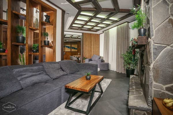 Вілла "Фамілія" знаходиться у місті Яремче, Івано-Франківської області. Розташована в унікальному місці на пагорбі гори. З вікон відкривається чудова панорама на все місто Яремче, а з балкона на гірську ущелину. Будинок оточують ліс та гори. До послуг гостей будинок для розміщення чотирьох осіб з наданням додаткових місць. Будинок укомплектований усім необхідним для комфортного проживання. У кімнатах встановлені двоспальні ліжка, в одній із кімнат є додатково розкладний диван. У вітальні - диван, телевізор, доступ до мережі Wi-Fi. У будинку є повністю облаштована кухня з усією необхідною технікою для самостійного приготування їжі та кухонним приладдям. Надаються послуги з прасування одягу. Ванна кімната з душовою кабіною та ванною, для зручностей встановлений підігрів підлоги. На території є відкритий басейн з підігрівом - працює лише в літній період, а також чан із холодною бочкою. Гості можуть скористатися мангалом. Є безкоштовна парковка. Відстань від вілли "Фамілія" до автовокзалу в Яремчі складає 5,5 км., до залізничного вокзалу - 5 км., до аеропорту в Івано-Франківську - 60 км.