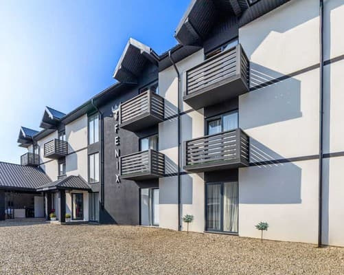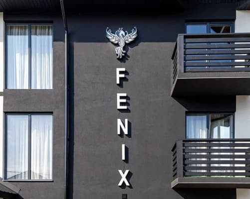 Готель "FENIX" розташований за 4,1 км від центру селища Солотвино. До послуг гостей номери, у яких є все необхідне для комфортного проживання. Спальня оснащена двоспальним та односпальним ліжками з постільною білизною, шафою, телевізором, робочим столом, холодильником, вентилятором, доступом до мережі Wi-Fi. Санвузол облаштований душем, умивальником, туалетом, рушниками та туалетно-косметичним приладдям. На території готелю є ресторан, бар, автостоянка, 2 басейна з прісною та солоною водою та шезлонги та дитяча ігрова зона. Відстань від готелю "FENIX" до залізничної станції "Солотвино-1" складає 2,8 км, до автовокзалу - 3,6 км, до солоного озера - 950 м.