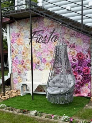 Готель "Fiesta" розташований у селищі Солотвино, за 850 м від солоного озера. Номерний фонд готелю складає 14 номерів категорії: "Економ" та "Напівлюкс", у яких є все необхідне для комфортного відпочинку: двоспальне та односпальне ліжка з постільною білизною, рушники, шафа, робочий стіл, доступ до мережі Wi-Fi. У номерах категорії "Напівлюкс" є холодильник. Санвузол оснащений душем, туалетом, умивальником. Номери "Економ" мають спільний санвузол на території. До послуг гостей на території: автостоянка, бар з літньою терасою, кухня для загального користування, басейн з прісною водою, джакузі, шезлонги та парасолі від сонця, джакузі в солоною водою, альтанки, зона барбекю та дитячий майданчик. Відстань від готелю "Fiesta" до центру селища складає 4,1 км, до автостанції Солотвино - 3,5 км, до залізничної станції "Солотвино-1"- 2,8 км.