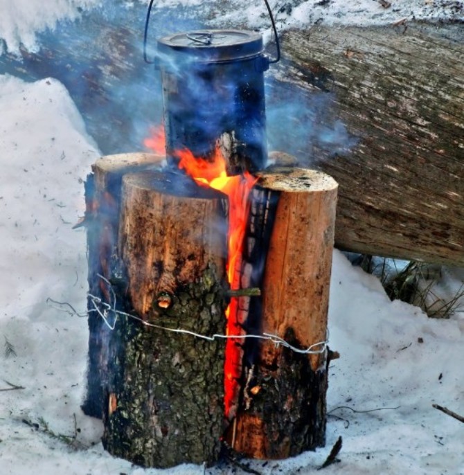 Фінська (шведська) свічка або як швидко приготувати їжу в похідних умовах (відео)