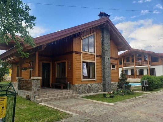 Шале "Гірська хатина" знаходиться в 800 м від центру в смт. Ворохта та являє собою окремий двоповерховий будинок на 8-10 осіб. На першому поверсі - вітальня з каміном (великий розкладний диван, стіл, телевізор), обладнана міні-кухня (електрична плита, мікрохвильова піч, холодильник, електрочайник, мийка, столовий та кухонний посуд), санвузол (кутова ванна, умивальник, туалет, біде ) і дві двомісні спальні. На другому поверсі - дві спальні (одна двомісна із суцільним матрацом, інша - двомісна з окремими ліжками), санвузол (душова кабіна, туалет, умивальник). У кожній спальні є телевізор, в одній - балкон. . Котедж здається повністю. На подвір'ї є альтанка і мангал (дрова платні). Можна самостійно готувати їжу на кухні або харчуватися в ресторані, який знаходиться в 600 м (знижка для жителів котеджу). Прибирання кімнат, зміна рушників - за потребою. Дрова для мангала і каміна за додаткову оплату. Неподалік є сауна. Басейн працює лише в зимовий сезон. Походи в гори, збирання грибів та ягід, катання на квадроциклах, на лижах, велосипедах, кінні прогулянки, прокат гірськолижного спорядження, зіп-лайн, рафтинг - за домовленістю за додаткову плату. Можливі послуги платного трансферу за попередньою домовленістю. Проживання з тваринами платне за попередньою домовленістю. Шале "Гірська хатина" знаходиться в 1,4 км від залізничного вокзалу.