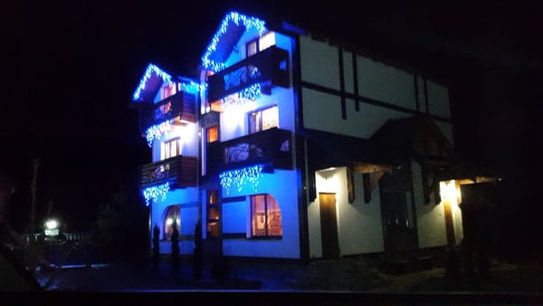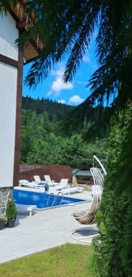 Приватна садиба "Гірська соната" знаходиться в Микуличині, в 100 м від річки Прут. Садиба являє собою триповерховий будинок з 7 номерами різних категорій і окремі апартаменти. Всі номери облаштовані двоспальними ліжками з ортопедичними матрацами, телевізорами з плоским екраном, електричним чайником, балконом, доступом до інтернету Wi-Fi. На першому поверсі готелю є кафе, вибір страв по меню. На території готелю є сауна на дровах з басейном і кімнатою відпочинку (користування платне), місце для барбекю з мангалом (дрова платні), відкритий літній басейн. Для дітей передбачений невеликий дитячий майданчик. Також автомобіль можна залишити на закритій території під відеоспостереженням (у дворі). Для комфорту проживання в готелі автономне опалення і цілодобове водопостачання. Послуги по пранню та прасуванню одягу платні. Проживання із тваринами до 3 кг можливе лише за попередньою домовленістю з готелем, вартість уточнювати. Можливі послуги платного трансферу за попередньою домовленістю. Приватна садиба "Гірська соната" розташована в 4,5 км від залізничної станції і в 86 км від аеропорту в Івано-Франківську.