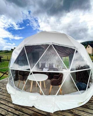 Інформацію уточнювати під час бронювання. Максимальне розміщення в будинку – 8 осіб, в апартаментах глемпінгах – 2 особи.