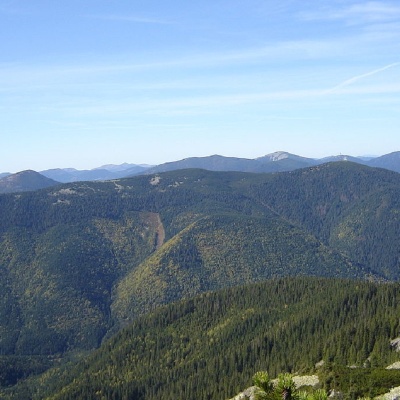 Вершина гори має пласку форму та вкрита густими заростями жерепу – альпійської сосни.