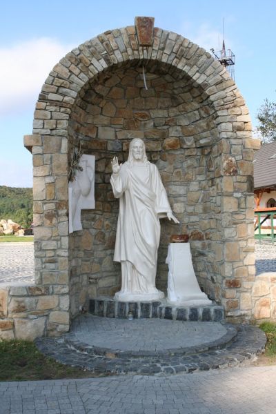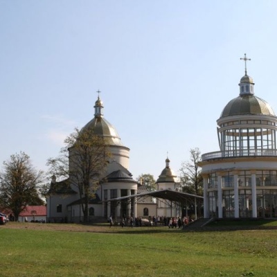 Поряд із храмом розташована простора скляна каплиця, оздоблена колонами, золотим куполом та копією чудотворної ікони Богородиці.