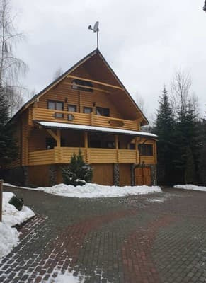 Котедж є 2-х поверховим будинком з усіма зручностями для 10 осіб (площа 270 м.кв.). На 1 поверсі розташовані: кухня оснащена всім необхідним; санвузол (суміщений: умивальник, унітаз, душова кабіна); вітальня з каміном, великим телевізором, м'яким розкладним диваном, журнальним столиком, обідній стіл зі стільцями; кімната для відпочинку з двома м'якими розкладними диванами. На 2 поверсі розташовані 2 спальні кімнати в яких є: ліжка (трохи більше стандартних розмірів для найкращого відпочинку і спокійного сну), приліжкові тумбочки, шафа для одягу, телевізор (супутникове ТБ), санвузол суміщений: умивальник, унітаз, душова кабіна. Зі спальних кімнат є вихід на балкони з видом на гірськолижний спуск. Всі інтер'єри зроблені з натурального дерева в сільському стилі, так само прекрасна сантехніка. Можливість установки додаткового місця.