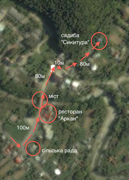 Виходити біля сільської ради, спитати водія напрямок, де садиба "Сикитура".