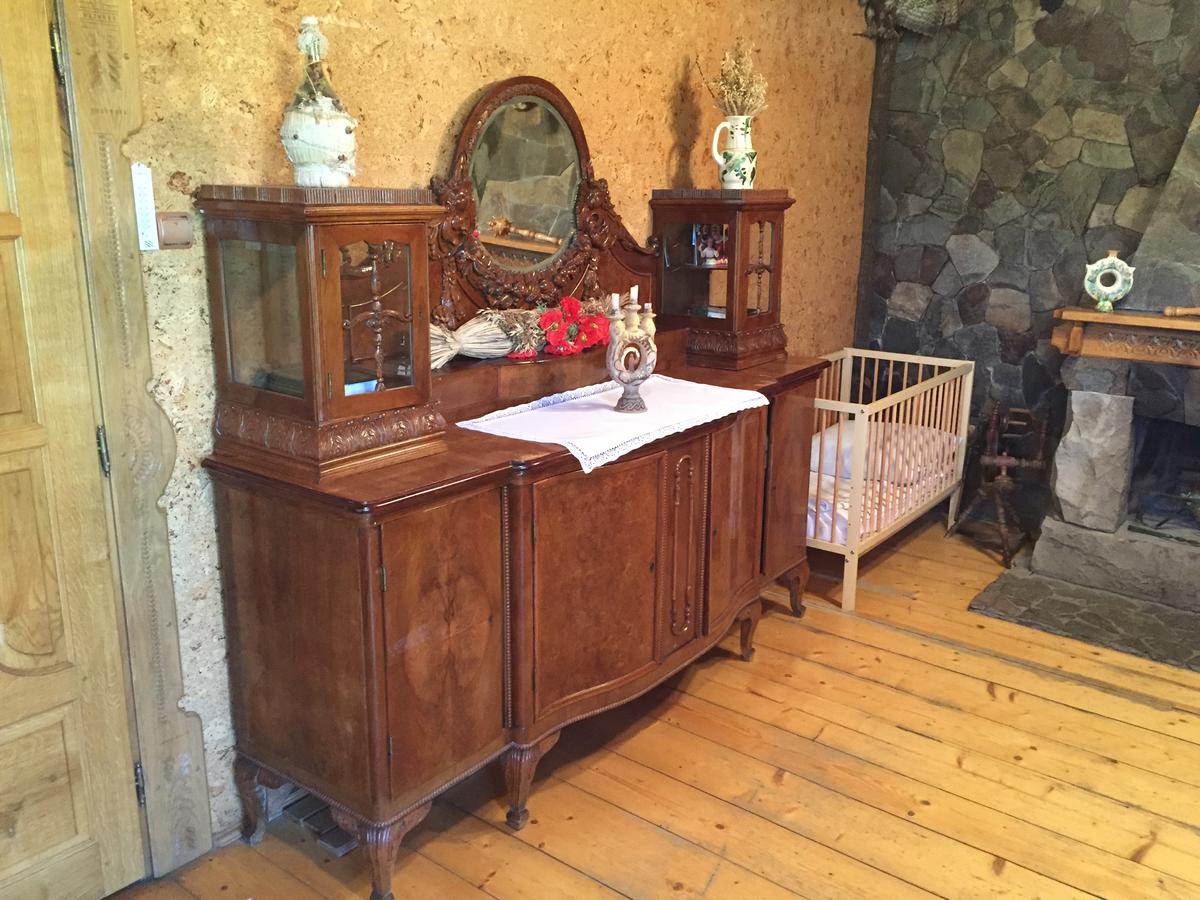 - На першому поверсі розташований високохудожній "Камінний" номер, з різбленою дерев'яною стелею, стіни оздоблені корковим дубом, великими дубовими вікнами, з яких відкривається неповторна панорама карпатської краси. Номер прикрашений двома інкрустованими гуцульською різьбою дубовими столами, високими буковими кріслами, натуральним діючим каміном з гірського колотого каміння, трьох різних видів. Задня стіна оздоблена натуральним колотим закарпатським каменем і двома кованими бра. Перелік вигод у "Камінному" номері: два ліжка двомісних (1950х1600 мм), комод-креденц, тумба під телевізор, телевізор, стіл, крісла - 4 шт., камін діючий, душова кабіна, умивальник, унітаз, дзеркало.