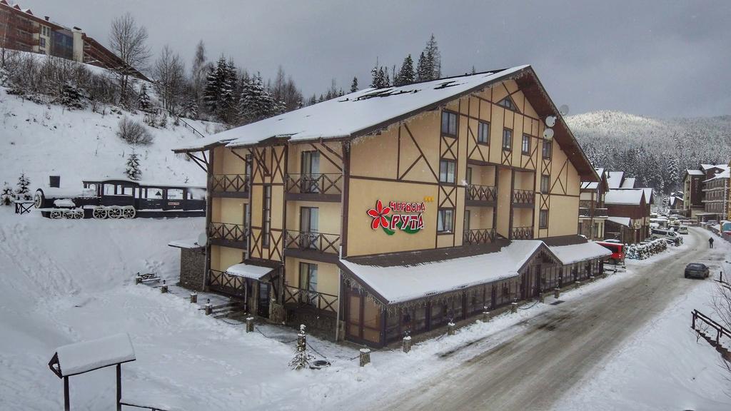 Готель "Червона рута" на 31 номер розташований на відстані 150 м від найближчого підйомника на Буковелі на схилах в тихій місцевості. На території є ресторан, кальянний зал, баня, паркінг. Можливі транспортні послуги.