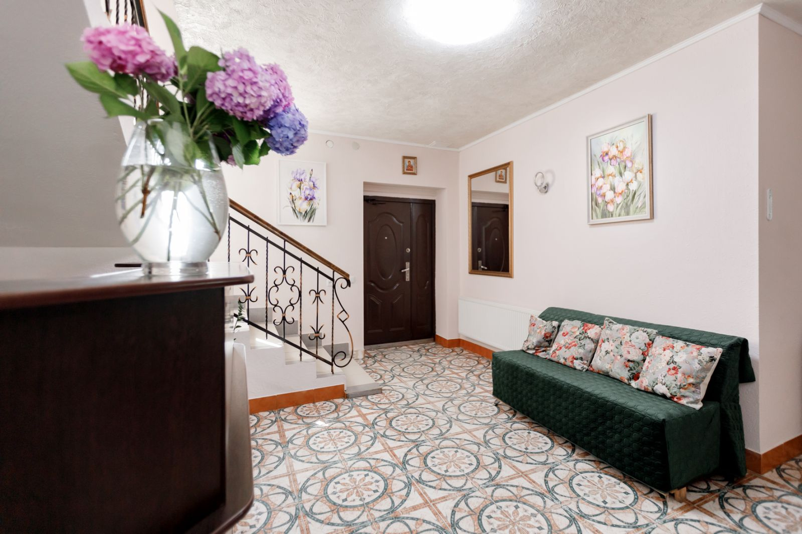 - Номер має двоспальне ліжко та диван.