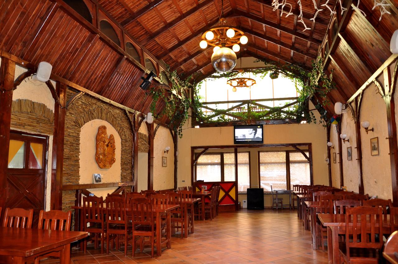 В ресторані на Вас очікує стильний, виконаний в дерев’яних тонах зал, з танцполом та невеликою бар стійкою. Через вихід з ресторану, можна потрапити на літній майданчик, із фонтанами, невеликою альтанкою, мощеною кам’яною огорожею та імітацією гірського потічка. У ресторані готелю пропонують страви карпатської та угорської кухонь. Щоранку для гостей готують домашній сніданок. Увечері можна посидіти за улюбленим напоєм у барі та послухати живу музику на терасі. Це ресторан в якому за допомогою інтер’єру і простору для Вас створили абсолютну атмосферу відпочинку. Банкетний зал на 50 місць у звичайному режимі працює з 08.00 до 18.00,зал на 100 місць працює з 11.00 до 24.00.
