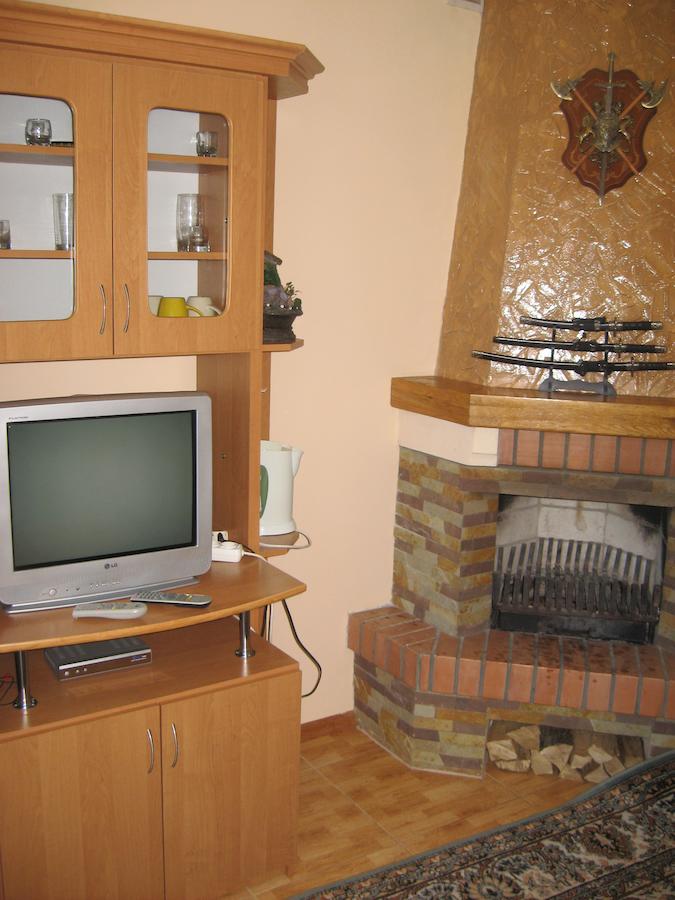 - Люкс з каміном - Двокімнатний номер, розрахований на дві особи, є можливість додаткового спального місця. У номері є велике двоспальне ліжко, шафа для одягу, тумбочки, розкладний диван, стіл, телевізор, холодильник, електричний чайник, набір посуду. У вітальні є камін, який створює затишок і домашню атмосферу.
