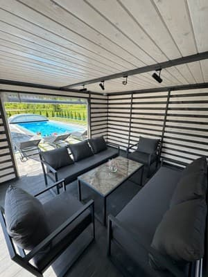 В котеджі є кухня з необхідною технікою та посудом для приготування їжі самостійно.