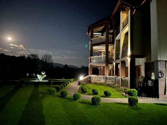 Потягом до залізничної станції Свалява, зі станції можливо скористатись трансфером до готелю, за додаткову плату.