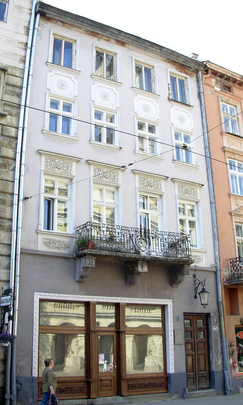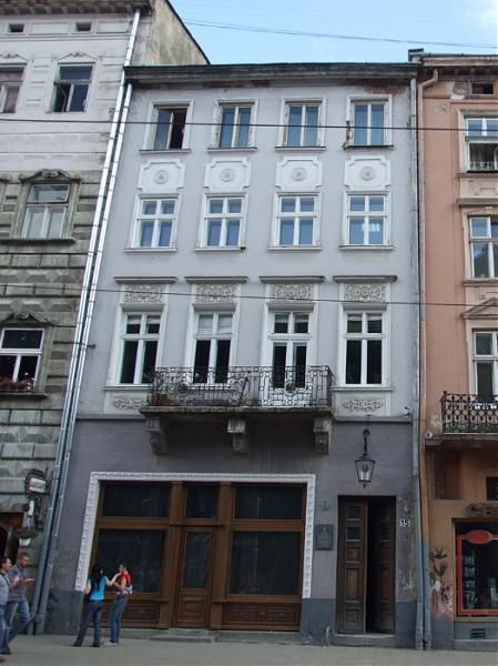 Будинок на площі Ринок, 15 (конскрипційний номер 232), колишня кам'яниця Майстршимонівська (Mistrzszymonowska). Давня садиба "містша" (тобто майстра) Шимона Сімонідеса (Шимоновича) (Szymon Simonides). У 1609 р. Шимон Сімонідес продав її за 5500 злотих суконнику Лаврентію Шміду (Wawrzynec Szmid).