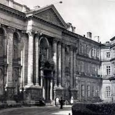 Будівля зроблена у вигляді старого бароко з елементами класицизму. На фасаді розкріпований антаблемент і з неї виступає портик з трикутним фронтоном, а на тимпані розміщено Всевидюще око, яке іноді сприймають за один з символів масонів. Львівський колегіум збудували з рисами класицизму. 1760 року було освячено наріжний камінь костелу. у 18 столітті ширились ідеї Просвітництва. Філософи наголошували на рівні права від народження. Ці їдеї опанували широкі верстви населення Франції. Фрідріх Вільгельм I і Фрідріх II Великий розширювали у своїй державі сітку початкових шкіл. З неймовірною швидкістю розрослась мережа нових університетів, академій.