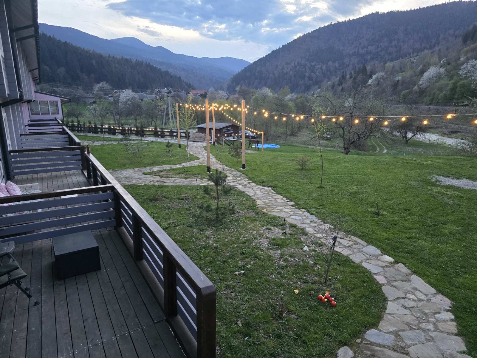 Здається котедж в С Микуличин, перша лінія від траси( вул Грушевського), позаду будинку річка і гора, з права паркова зона. Зпереду котеджа паркомісце для машин, а позаду - тераса з садовими меблями, мангал, гриль. Котедж складається з 2 поверхів(129м2). На першому поверсі кухня-студія,ванна і передпокій; на другому- дві спальні, хол, душова кімната. Котедж має 8 спальних місць, також можемо доставити переносну люльку для немовляти. В 300м від котеджу знаходиться магазин, 500м - чан, 20км - Буковель, 8,8км- водоспад Пробій.