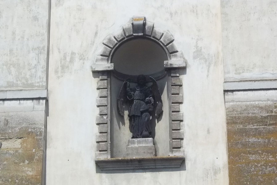 Будучи збудований за межами міських мурів, монастир, як і інші середміські монастирі, мав риси оборонної архітектури. Подвірʼя початково було утворено храмом, монастирським будинком і муром, зведеним у 1608–1610 роках. До монастирського комплексу належав також сад - зразок садово-паркової архітекури ренесансної доби, автором планування якого також був Павло Римлянин.