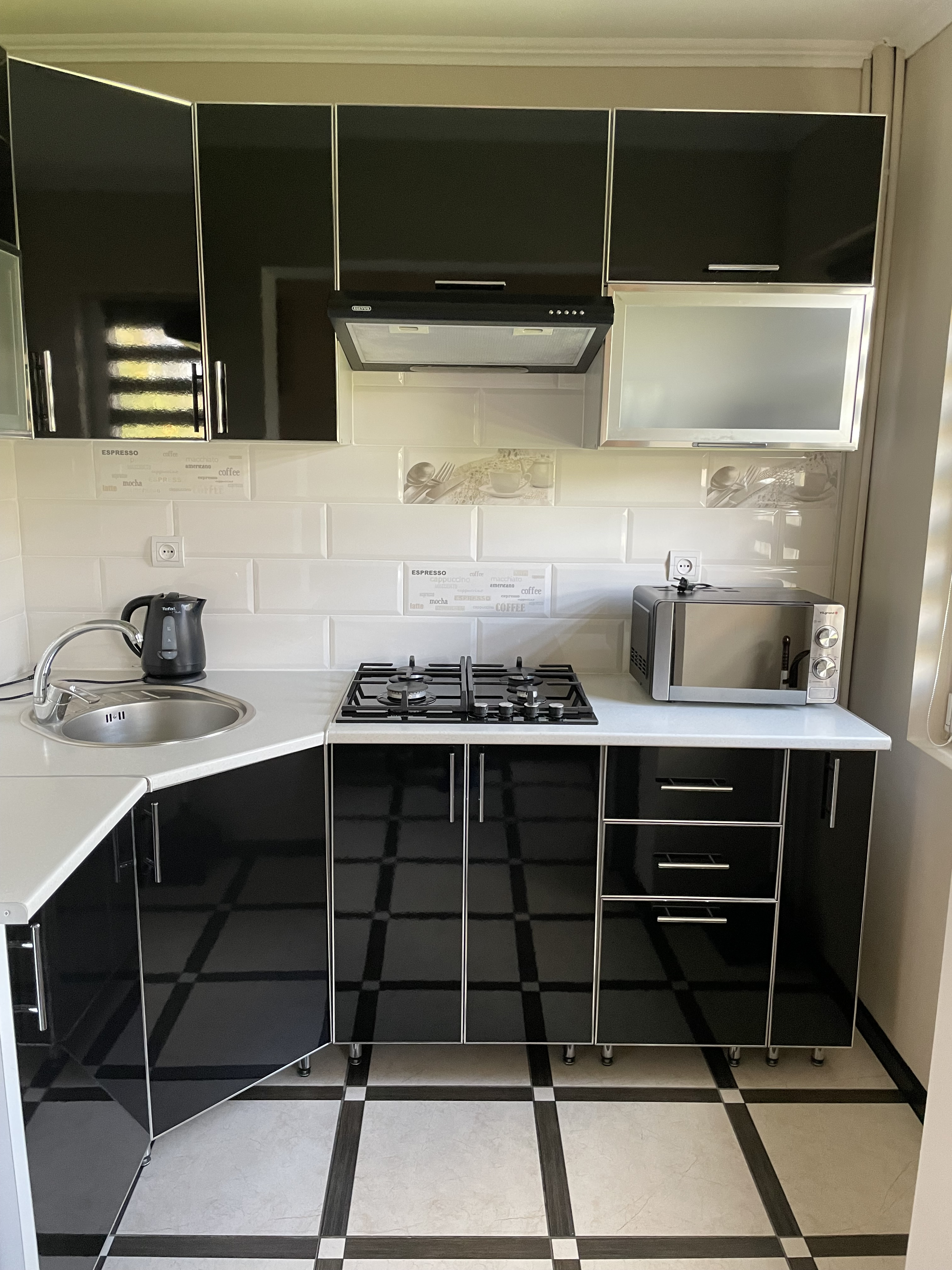 У будиночку є кухня з кухонним приладям, мікрохвильовою піччю, холодильником і плитою.